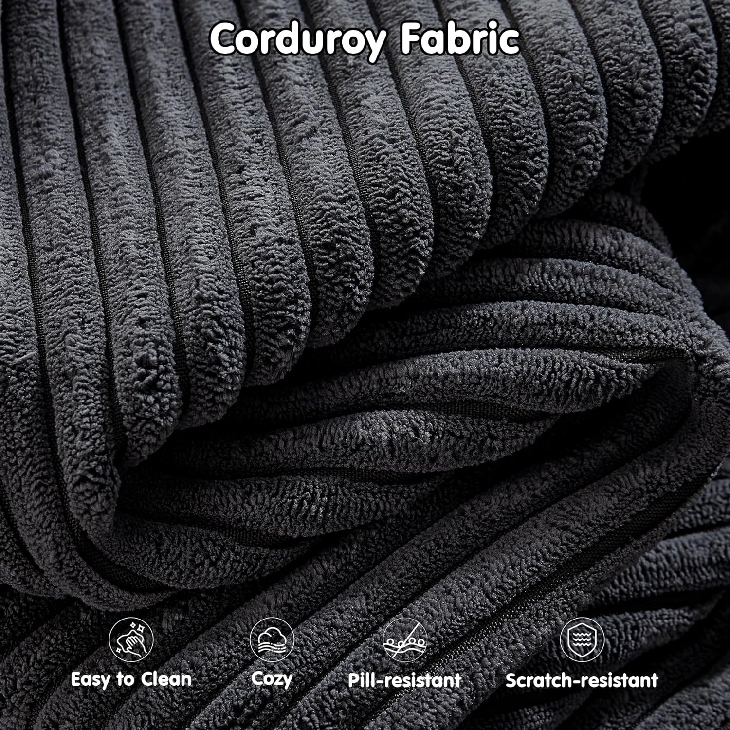 Plush Corduroy L-Shape Sofa – Ready to Lounge, No Assembly